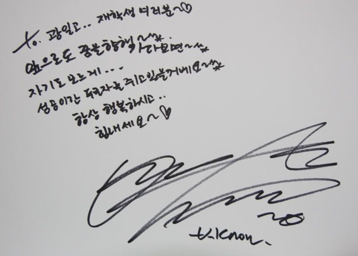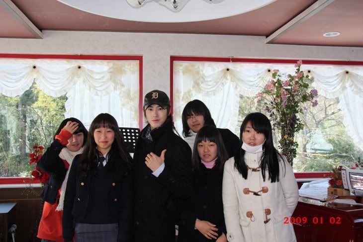 In summary, alumni TVXQ leader Yunho with his parents visited his alma mater Kwangil High School 5 years after graduating last February 2004 when he was 19. He paid for the scholarship of 6 junior students and met with the principal and his previous teachers. He also had an autograph signing session and gave inspirational talk for the success of the dreams of the students through having passion and then had a picture taken with some of his fans [4th pic].